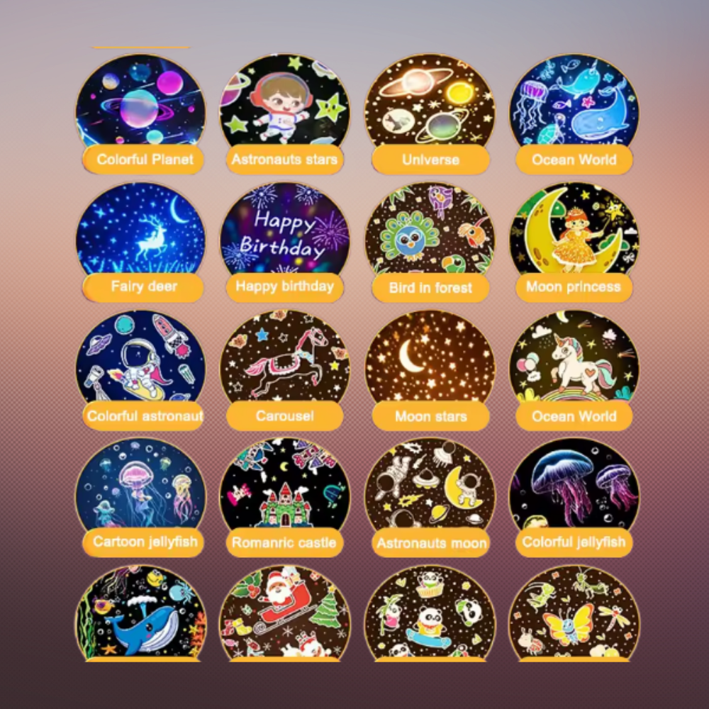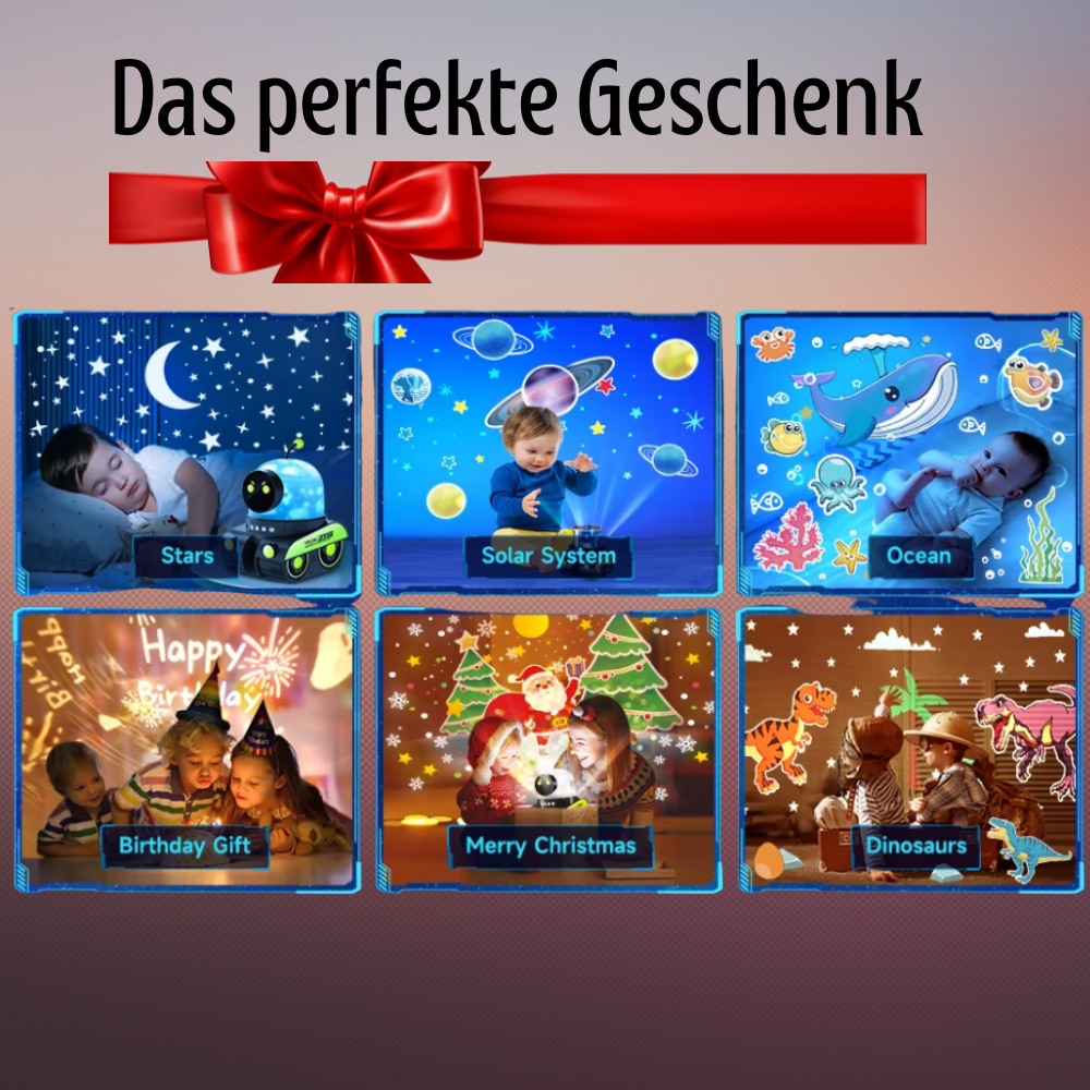Der Toylini™ Kinderprojektor macht genau das möglich:Er verwandelt das Kinderzimmer nicht nur in eine beruhigende Traumwelt – sondern auch in einen sprachfördernden Erlebnisraum. Spielerisch. Emotional. Nachhaltig.